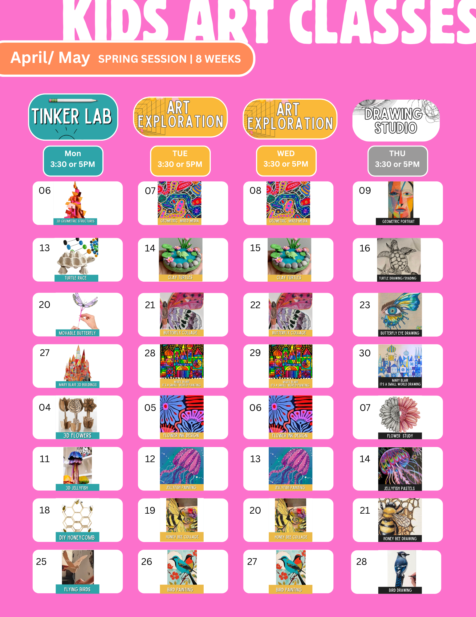 Spring Art Classes for Kids: 8 weeks Starts the week of April 5th